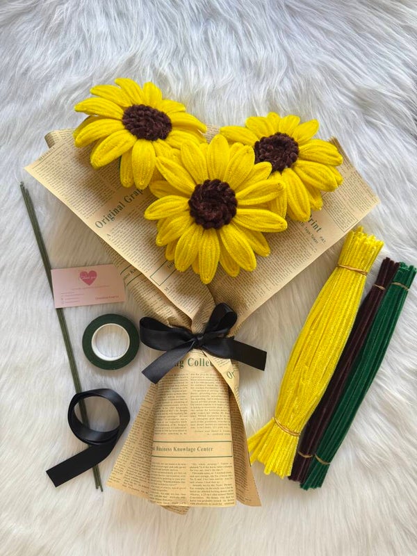 Met onze Sunshine DIY kit maak je prachtige zonnebloemen van chenille draadjes.